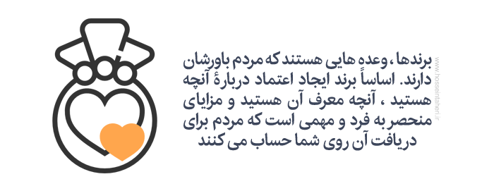 برند مجموعهای از وعدههاست. شما برندتان را از طریق ایجاد اعتماد به یک وعدهٔ خاص میسازید. وعدهٔ شما نشاندهندۀ این است چه کسی هستید، چه وعدهای دادهاید و چه مزایای منحصربهفرد و معناداری ارائه میکنید. شما برند خود را طبق اطلاعاتی که مردم از هر بار ارتباط بانام، پیام یا سازمان شما بهدست میآورند، میسازید. فرق نمیکند این ارتباط از طریق جستوجوی اینترنتی، وبسایت شما، رسانههای جمعی، تبلیغات، شهرت، سخن دیگران، تجربهٔ خرید، خدمات مشتریان، صدور صورتحساب و یا هر راه دیگری باشد؛ تمامی این موارد بر ادراک افراد از برند تأثیر گذار است. برند در ذهن مشتری زندگی می کند. برند سازی فرایند ایجاد باورها و ادراک مطلوب و مورد نظر شما ، در ذهن مشتری است. اگر برند شما با آنچه انتظار میرود مغایر باشد، چنین تجربههایی اساساً وعدهٔ شمارا خدشهدار میکند، به برند ضربه میزند و نهایتاً شهرت شمارا به خطر میاندازد. ساخت برند نیازمند توجه، اشتیاق و پایداری و پشتکار است. بهعلاوه ساخت برند تلاش و تعهد نیز میخواهد. بزرگترین تجربهٔ آنهم افزایش موفقیت در کسبوکار است.